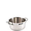 Linea di pentole in acciaio inox 18/10 dal design pratico ed elegante, caratterizzata da maniglie, manico lungo e ponticello in acciaio di forma tubolare con finitura lucida.